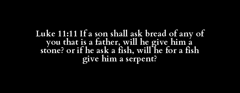 Luke 11:11 If a son shall ask bread of any of you that is a father, will he give him a stone? or if he ask a fish, will he for a fish give him a serpent?