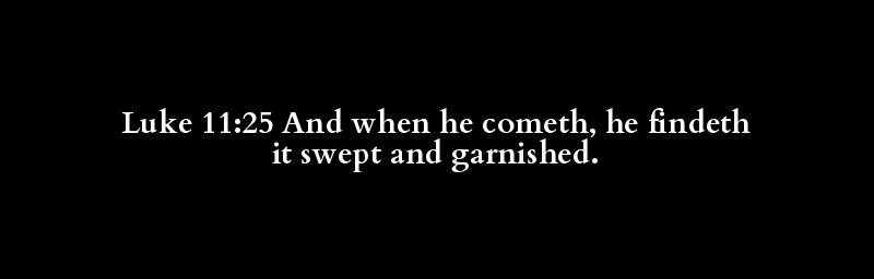Luke 11:25 And when he cometh, he findeth it swept and garnished.