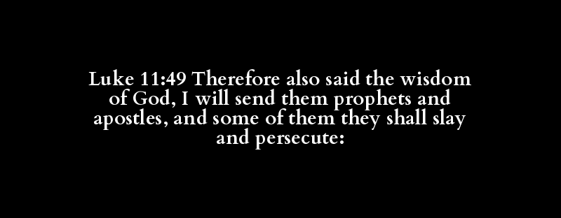 Luke 11:49 Therefore also said the wisdom of God, I will send them prophets and apostles, and some of them they shall slay and persecute: