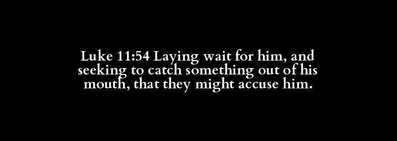 Luke 11:54 Laying wait for him, and seeking to catch something out of his mouth, that they might accuse him.