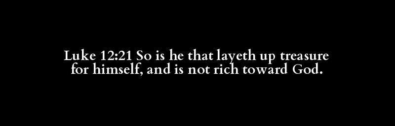 Luke 12:21 So is he that layeth up treasure for himself, and is not rich toward God.