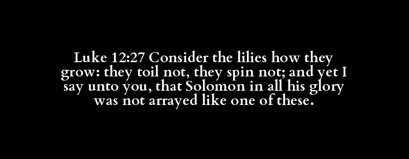 | behold, consider, discover, perceive | lily | how, after (by) what manner (means), t.. | grow (up), (give the) increase | bestow) labour, toil, be wearied | long, nay, neither, never, no (X man).. | spin | neither (indeed), never, no (more, nor.. | also, and, but, moreover, now | ask, bid, boast, call, describe, give .. | ye, you, your(-selves | Solomon | about, after, against, + almost, X alt.. | all (manner of, means), alway(-s), any.. | her, it(-self), one, the other, (mine).. | dignity, glory(-ious), honour, praise,.. | array, cast about, clothe(-d me), put on | neither (indeed), never, no (more, nor.. | array, cast about, clothe(-d me), put on | about, after (that), (according) as (i.. | a(-n, -ny) (certain), + abundantly, ma.. | such, their, these (things), they, thi.. |