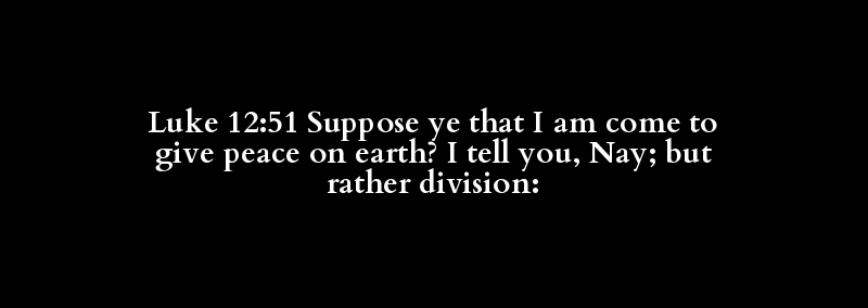 Luke 12:51 Suppose ye that I am come to give peace on earth? I tell you, Nay; but rather division: