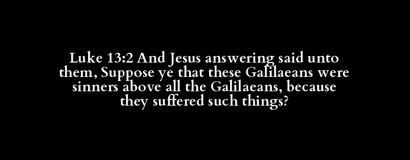 Luke 13:2 And Jesus answering said unto them, Suppose ye that these Galilaeans were sinners above all the Galilaeans, because they suffered such things?
