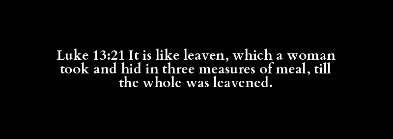 Luke 13:21 It is like leaven, which a woman took and hid in three measures of meal, till the whole was leavened.