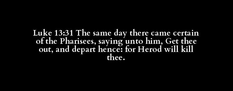 Luke 13:31 The same day there came certain of the Pharisees, saying unto him, Get thee out, and depart hence: for Herod will kill thee.