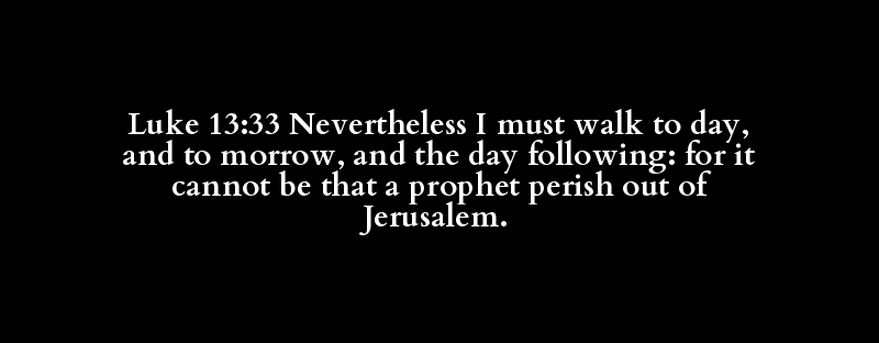 Luke 13:33 Nevertheless I must walk to day, and to morrow, and the day following: for it cannot be that a prophet perish out of Jerusalem.