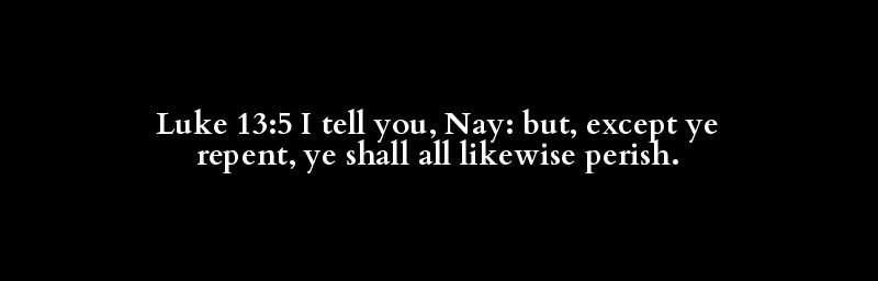 Luke 13:5 I tell you, Nay: but, except ye repent, ye shall all likewise perish.