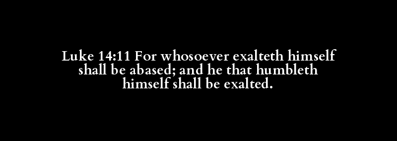 Luke 14:11 For whosoever exalteth himself shall be abased; and he that humbleth himself shall be exalted.