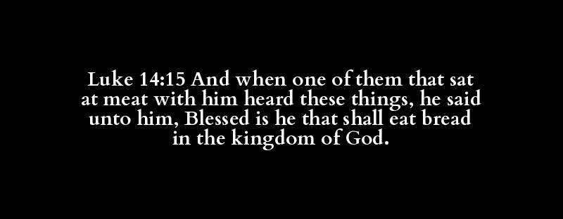 Luke 14:15 And when one of them that sat at meat with him heard these things, he said unto him, Blessed is he that shall eat bread in the kingdom of God.