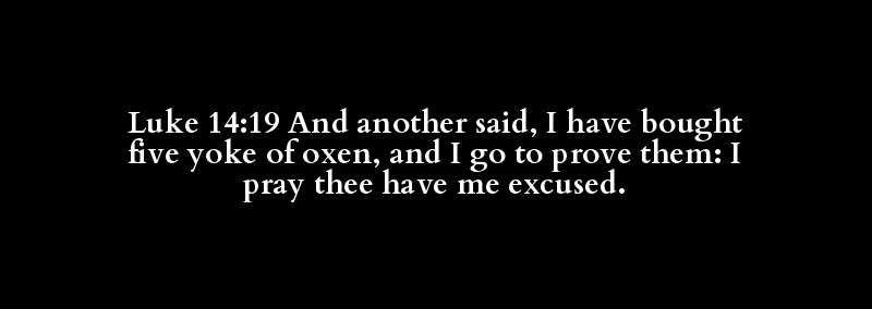 Luke 14:19 And another said, I have bought five yoke of oxen, and I go to prove them: I pray thee have me excused.
