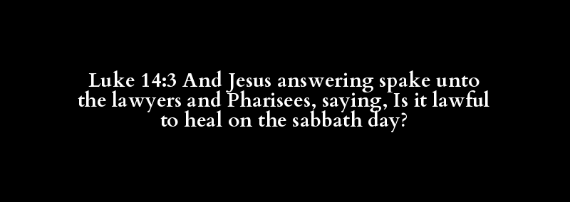 Luke 14:3 And Jesus answering spake unto the lawyers and Pharisees, saying, Is it lawful to heal on the sabbath day?