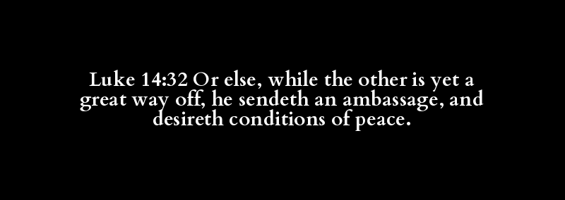 Luke 14:32 Or else, while the other is yet a great way off, he sendeth an ambassage, and desireth conditions of peace.