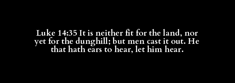 Luke 14:35 It is neither fit for the land, nor yet for the dunghill; but men cast it out. He that hath ears to hear, let him hear.