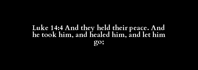 Luke 14:4 And they held their peace. And he took him, and healed him, and let him go;