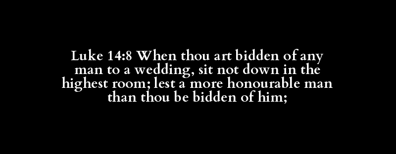 Luke 14:8 When thou art bidden of any man to a wedding, sit not down in the highest room; lest a more honourable man than thou be bidden of him;
