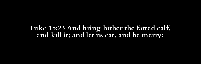 Luke 15:23 And bring hither the fatted calf, and kill it; and let us eat, and be merry: