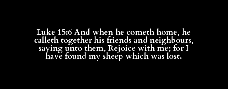 Luke 15:6 And when he cometh home, he calleth together his friends and neighbours, saying unto them, Rejoice with me; for I have found my sheep which was lost.