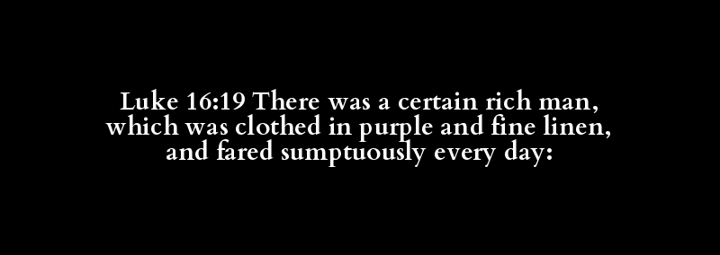 Luke 16:19 There was a certain rich man, which was clothed in purple and fine linen, and fared sumptuously every day: