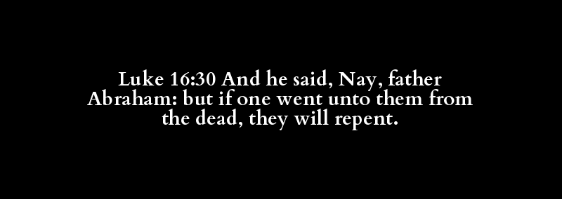 Luke 16:30 And he said, Nay, father Abraham: but if one went unto them from the dead, they will repent.