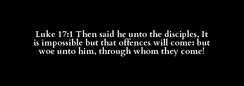 Luke 17:1 Then said he unto the disciples, It is impossible but that offences will come: but woe unto him, through whom they come!