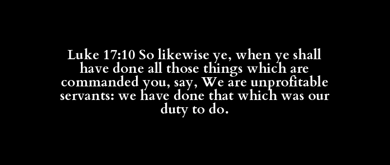 Luke 17:10 So likewise ye, when ye shall have done all those things which are commanded you, say, We are unprofitable servants: we have done that which was our duty to do.
