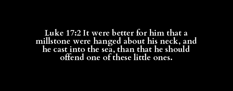 Luke 17:2 It were better for him that a millstone were hanged about his neck, and he cast into the sea, than that he should offend one of these little ones.