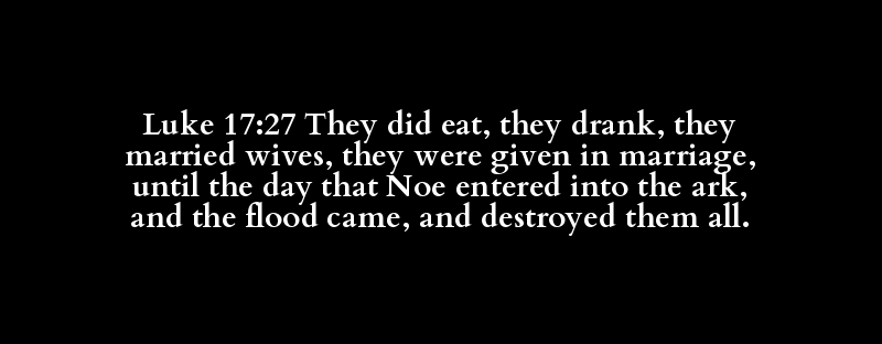 Luke 17:27 They did eat, they drank, they married wives, they were given in marriage, until the day that Noe entered into the ark, and the flood came, and destroyed them all.