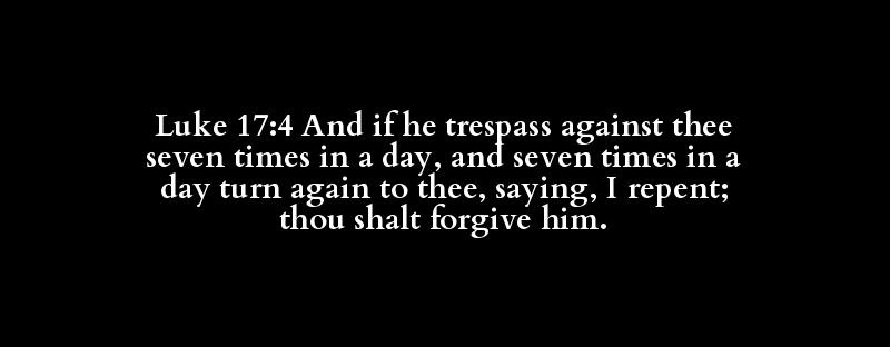 Luke 17:4 And if he trespass against thee seven times in a day, and seven times in a day turn again to thee, saying, I repent; thou shalt forgive him.
