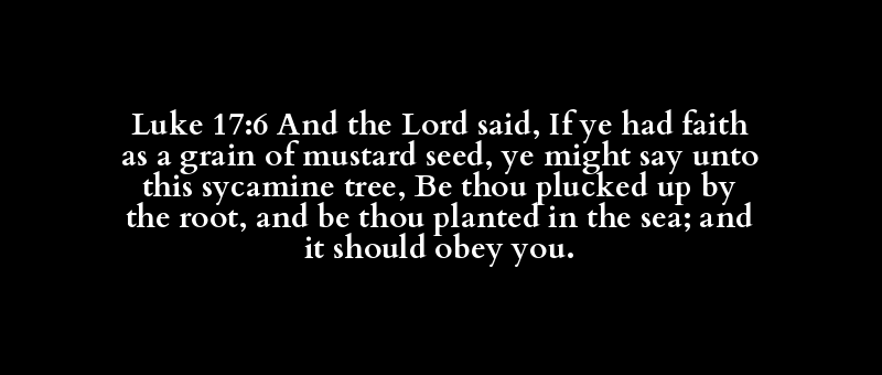 | also, and, but, moreover, now | God, Lord, master, Sir | answer, bid, bring word, call, command.. | forasmuch as, if, that, (al-)though, w.. | be (able, X hold, possessed with), acc.. | assurance, belief, believe, faith, fid.. | about, after (that), (according) as (i.. | corn, grain | mustard | what-, where-, wither-, who-)soever | ask, bid, boast, call, describe, give .. | her, + hereof, it, that, + thereby, th.. | sycamine tree | pluck up by the root, root up | and, also, both, but, even, for, if, o.. | plant | about, after, against, + almost, X alt.. | sea | and, also, both, but, even, for, if, o.. | what-, where-, wither-, who-)soever | hearken, be obedient to, obey | ye, you, your(-selves |