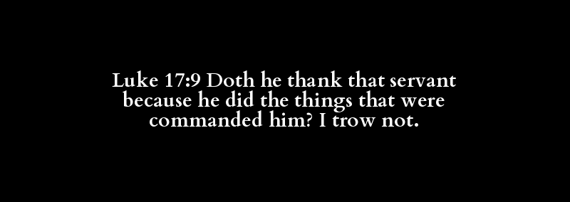 Luke 17:9 Doth he thank that servant because he did the things that were commanded him? I trow not.