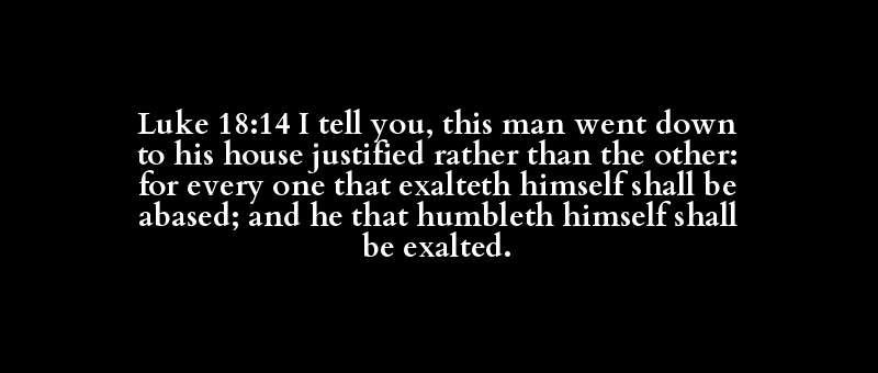 Luke 18:14 I tell you, this man went down to his house justified rather than the other: for every one that exalteth himself shall be abased; and he that humbleth himself shall be exalted.