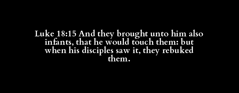 Luke 18:15 And they brought unto him also infants, that he would touch them: but when his disciples saw it, they rebuked them.