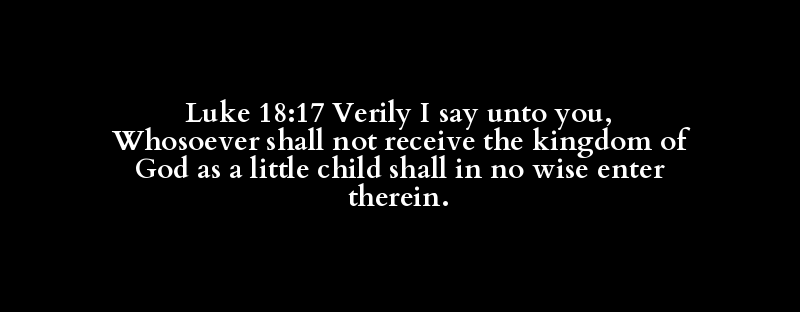 Luke 18:17 Verily I say unto you, Whosoever shall not receive the kingdom of God as a little child shall in no wise enter therein.