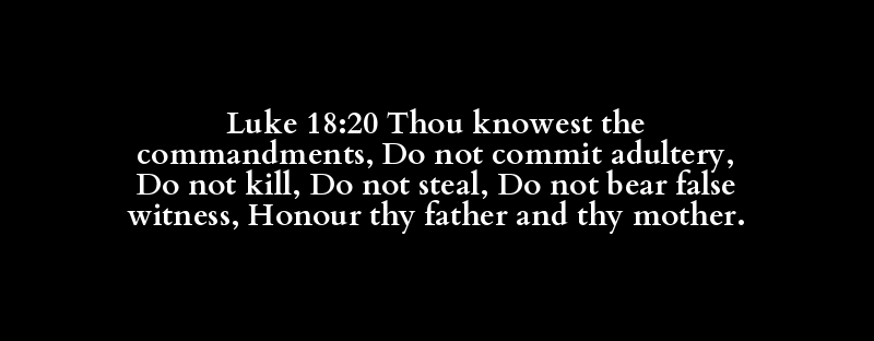 Luke 18:20 Thou knowest the commandments, Do not commit adultery, Do not kill, Do not steal, Do not bear false witness, Honour thy father and thy mother.