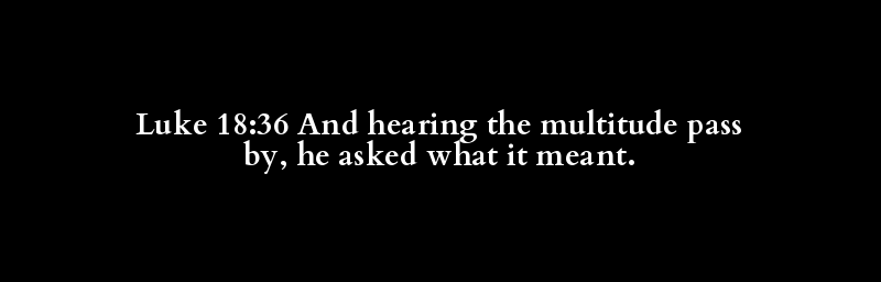 Luke 18:36 And hearing the multitude pass by, he asked what it meant.