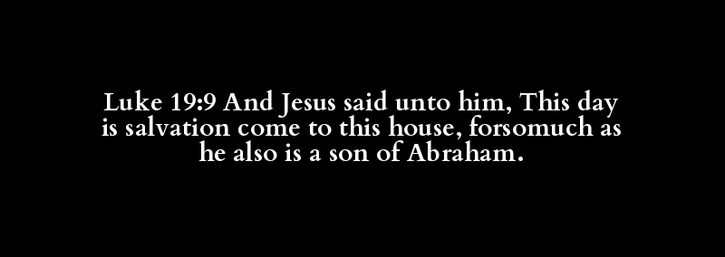 Luke 19:9 And Jesus said unto him, This day is salvation come to this house, forsomuch as he also is a son of Abraham.