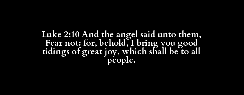 Luke 2:10 And the angel said unto them, Fear not: for, behold, I bring you good tidings of great joy, which shall be to all people.