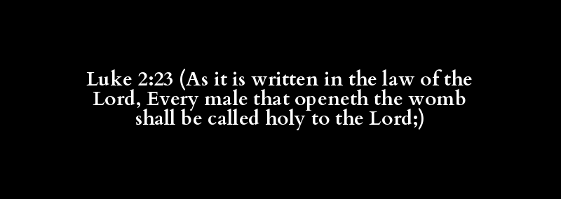 Luke 2:23 (As it is written in the law of the Lord, Every male that openeth the womb shall be called holy to the Lord;)