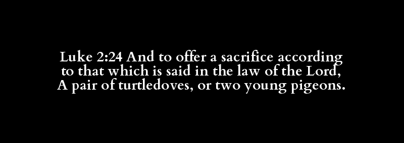 Luke 2:24 And to offer a sacrifice according to that which is said in the law of the Lord, A pair of turtledoves, or two young pigeons.