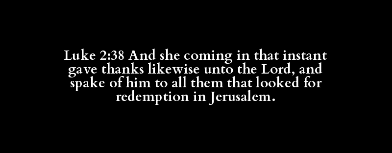 Luke 2:38 And she coming in that instant gave thanks likewise unto the Lord, and spake of him to all them that looked for redemption in Jerusalem.
