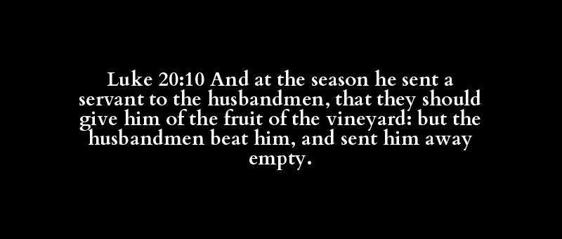 Luke 20:10 And at the season he sent a servant to the husbandmen, that they should give him of the fruit of the vineyard: but the husbandmen beat him, and sent him away empty.