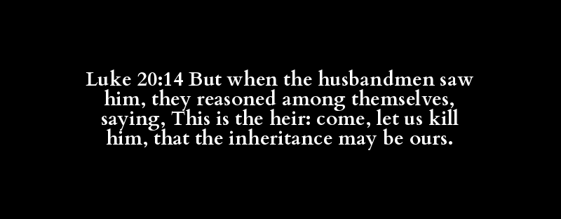 Luke 20:14 But when the husbandmen saw him, they reasoned among themselves, saying, This is the heir: come, let us kill him, that the inheritance may be ours.