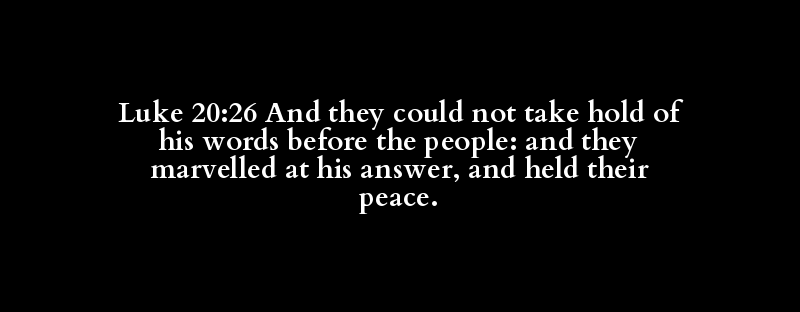 Luke 20:26 And they could not take hold of his words before the people: and they marvelled at his answer, and held their peace.