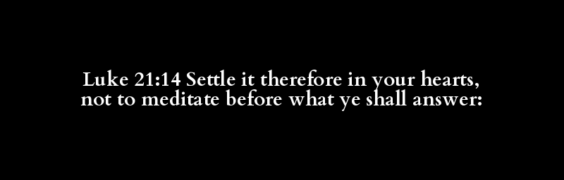 Luke 21:14 Settle it therefore in your hearts, not to meditate before what ye shall answer: