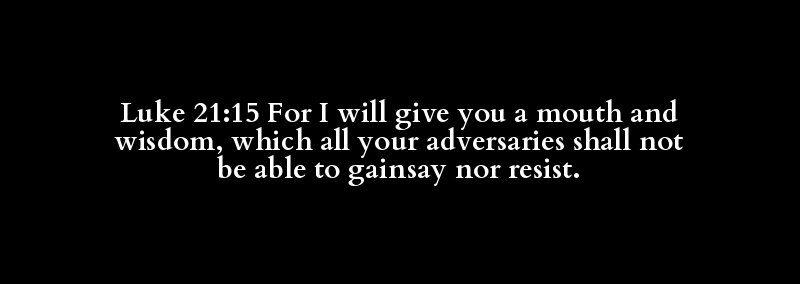 Luke 21:15 For I will give you a mouth and wisdom, which all your adversaries shall not be able to gainsay nor resist.
