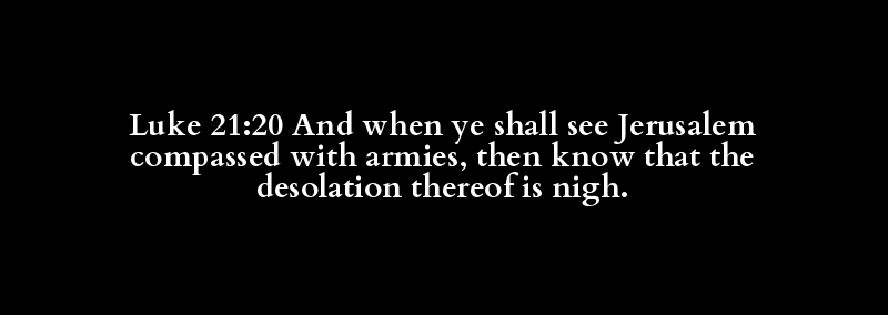 Luke 21:20 And when ye shall see Jerusalem compassed with armies, then know that the desolation thereof is nigh.