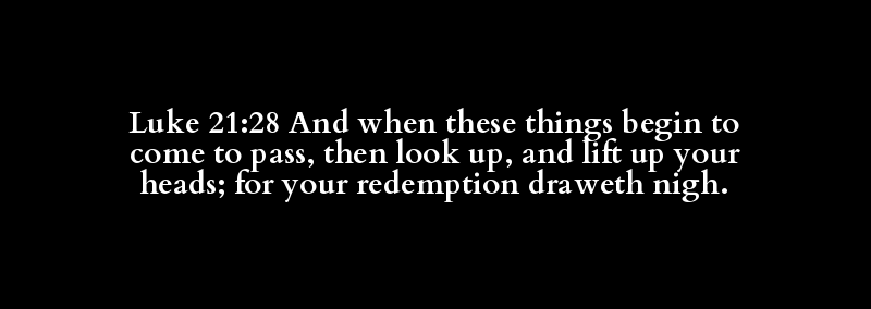 Luke 21:28 And when these things begin to come to pass, then look up, and lift up your heads; for your redemption draweth nigh.