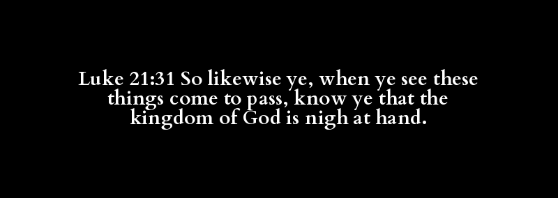 Luke 21:31 So likewise ye, when ye see these things come to pass, know ye that the kingdom of God is nigh at hand.