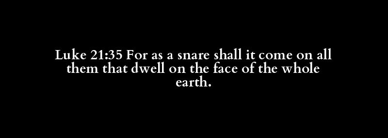 Luke 21:35 For as a snare shall it come on all them that dwell on the face of the whole earth.